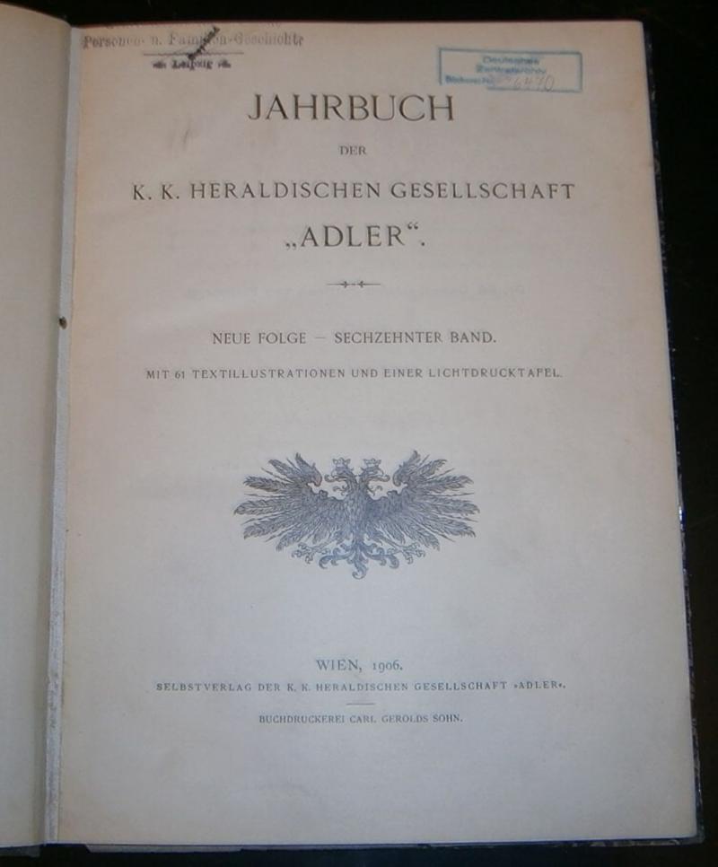 JAHRBUCH DER K. K. HERALDISCHEN GESELLSCHAFT "ADLER".