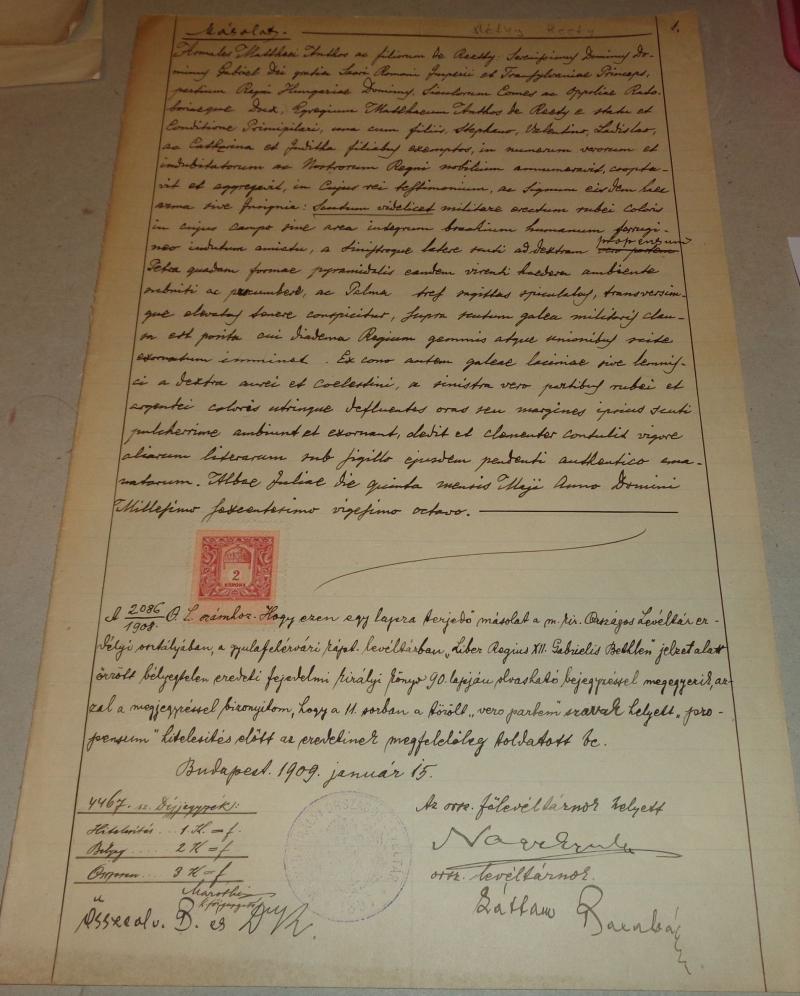Réthy család, oklevél másolat. Címerhasznála
