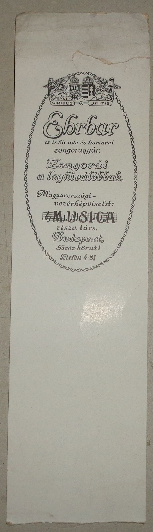 Könyvjelző: Ehrbar Zongoragyár