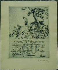 me4695. engraving/Ex libris/German put into the basket Héroux, Bruno: Ex libris Oskar Leuschner.without year. Etching.size: 9x5 cm. page: 15x10 cm. price: 9.23 EUROBruno Héroux 1868-1944.