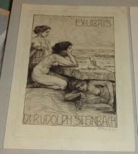 me4582. engraving/Ex libris/German put into the basket Héroux, Bruno: Ex libris Dr. Rudolph Steinbach.1910. Etching.size: 11x8 cm. page: 15x11 cm. price: 15.38 EUROBruno Héroux 1868-1944.