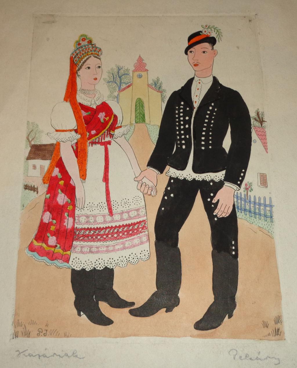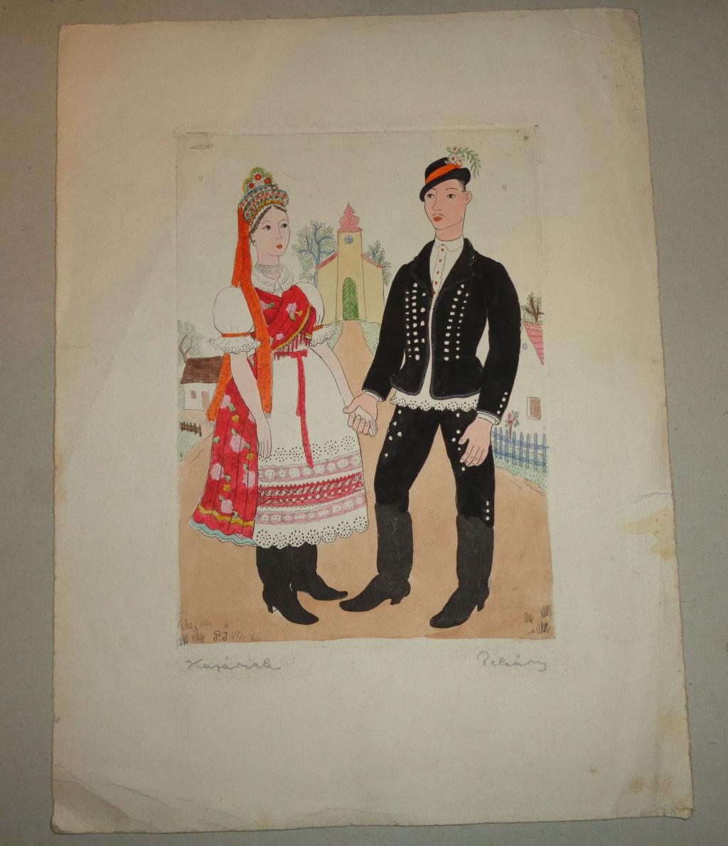 akvarell, rézkarc. Ceruzával szignált. Kopott, képmezőn kivül foltok beszakadások.