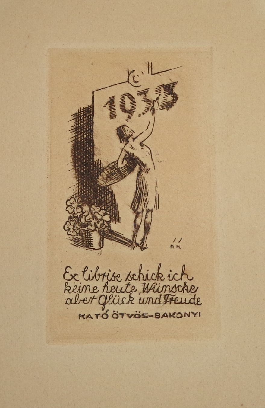 Hungarian put into the basket RÉVÉSZ Kornél: Ex libris Ex librise schick ich keine heute, Wünsche aber Glück und Freude Kató Ötvös-Bakonyi.