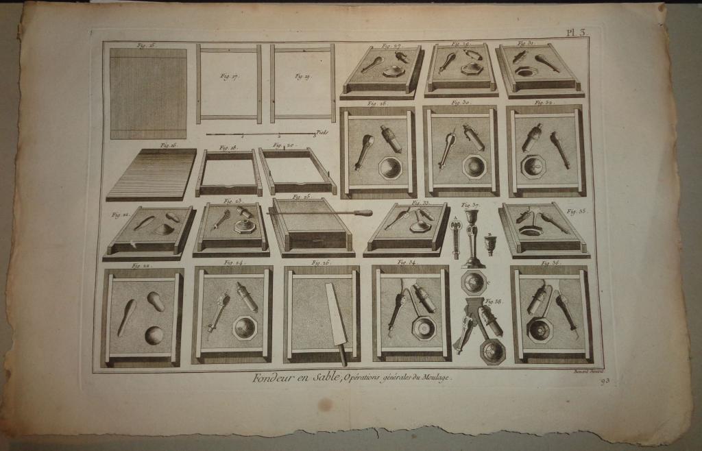 Az eredeti művet Párizsban adták ki 1751 és 1772 között, de a metszet későbbi változatokban is megjelent. A példányunk a Panckoucke-féle Encyclopédie méthodique-ban, az 1780-as években került kiadásra.