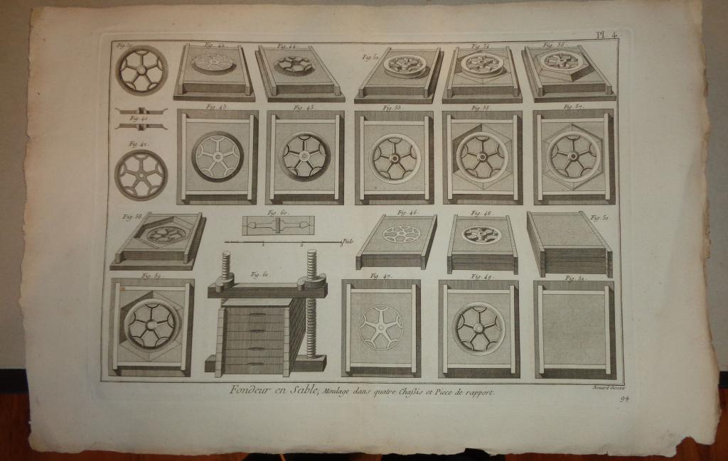 profession, industry history put into the basket Robert Bénard (1734–1777): Fondeur en Sable. I-IV. (Homoköntő, öntészet) (Sand casting, foundry).