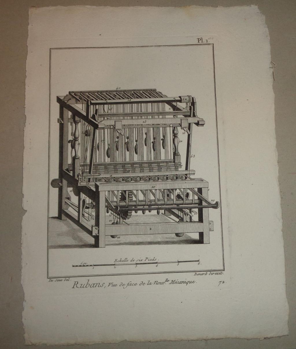 profession, industry history put into the basket Robert Bénard (1734–1777): Rubans (Métier à tisser à ruban) I-X. (Szalag szövőszék)-(Ribbon loom).