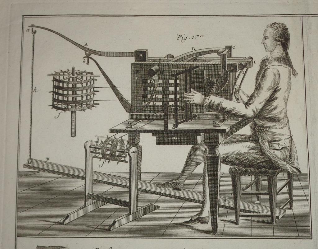 profession, industry history put into the basket Robert Bénard (1734–1777): Art du Cardier, ou faiseur de Cardes. I-IV. (gyapjúkártoló)-(Carding).