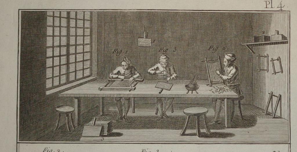 Az eredeti művet Párizsban adták ki 1751 és 1772 között, de a metszet későbbi változatokban is megjelent. A példányunk a Panckoucke-féle Encyclopédie méthodique-ban, az 1780-as években került kiadásra.