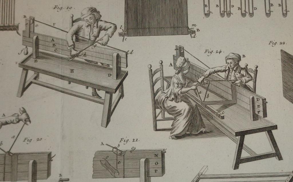 profession, industry history put into the basket Robert Bénard (1734–1777): Lisses I-II. (Szövőszék alkatrészek)-(Weaving Loom Parts).