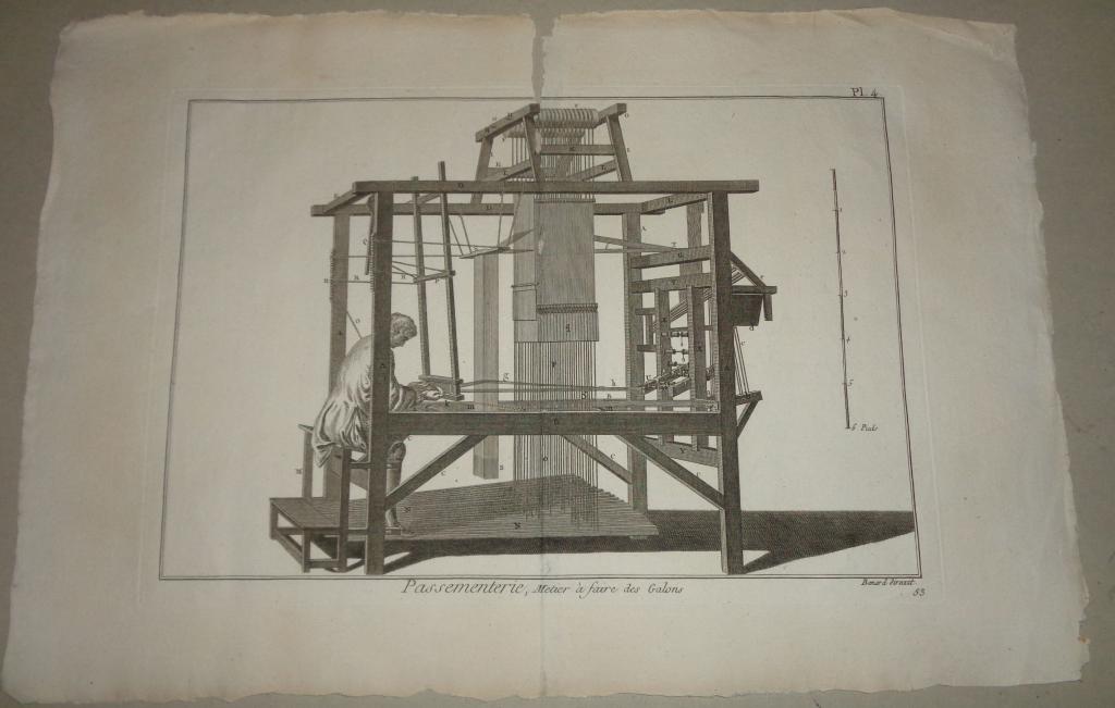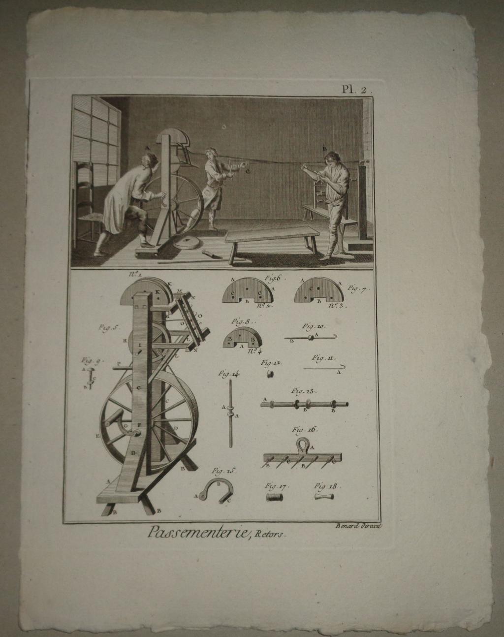 Az eredeti művet Párizsban adták ki 1751 és 1772 között, de a metszet későbbi változatokban is megjelent. A példányunk a Panckoucke-féle Encyclopédie méthodique-ban, az 1780-as években került kiadásra.