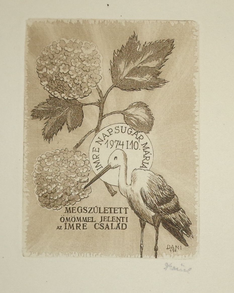 Dániel Viktor (1926 - 2001): Megszületett Imre Napsugár Mária. 1974. I.10