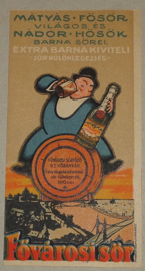 Fővárosi Sörfőző. Mátyás Fősör Világos és Nádor Hősök barna Sörei. Extra Barna Kiviteli Sörkülönlegesség. Fővárosi Sörfőző Rt. Kőbányán. Extra világos kiviteli márciusi körkülönlegesség, 200 liter.