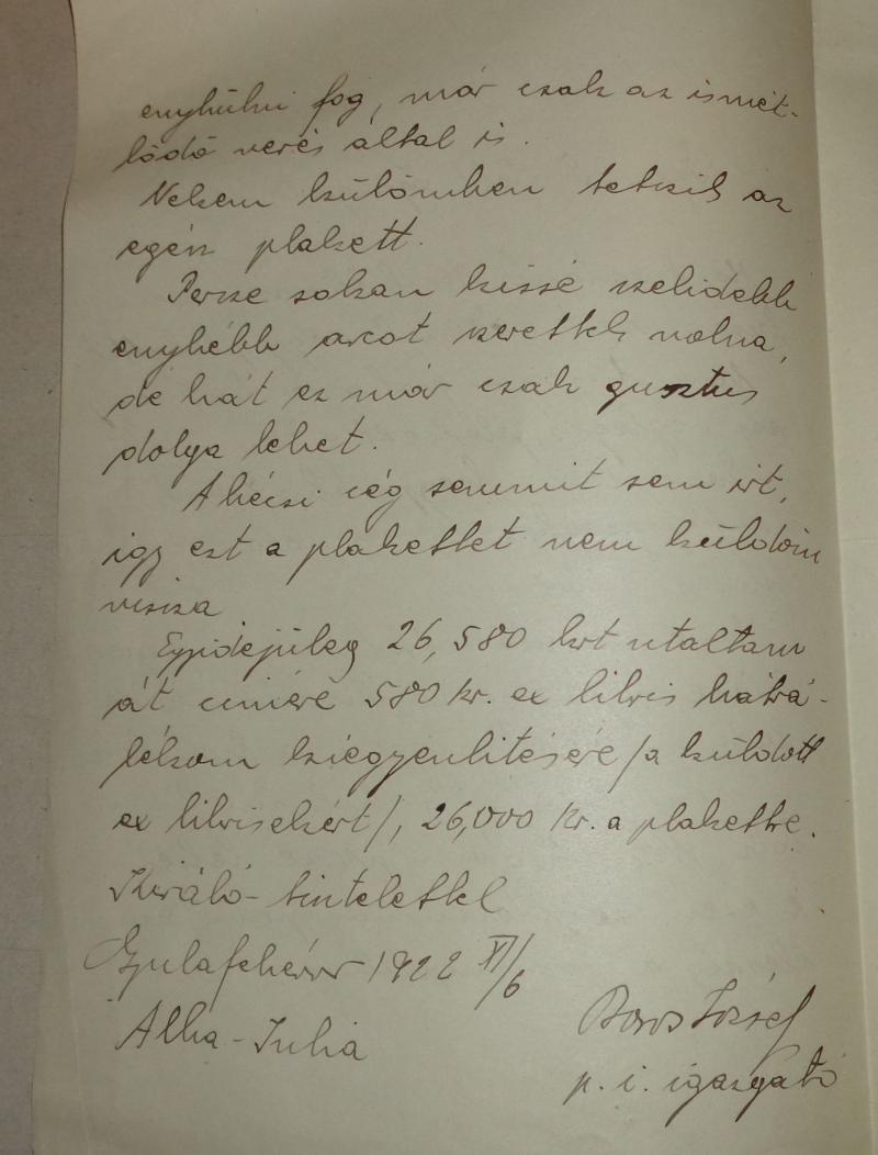 Boros József (szül. 1883) kanonok, a gyulafehérvári káptalani levéltár őrének levele [Varjú Elemér-nek].