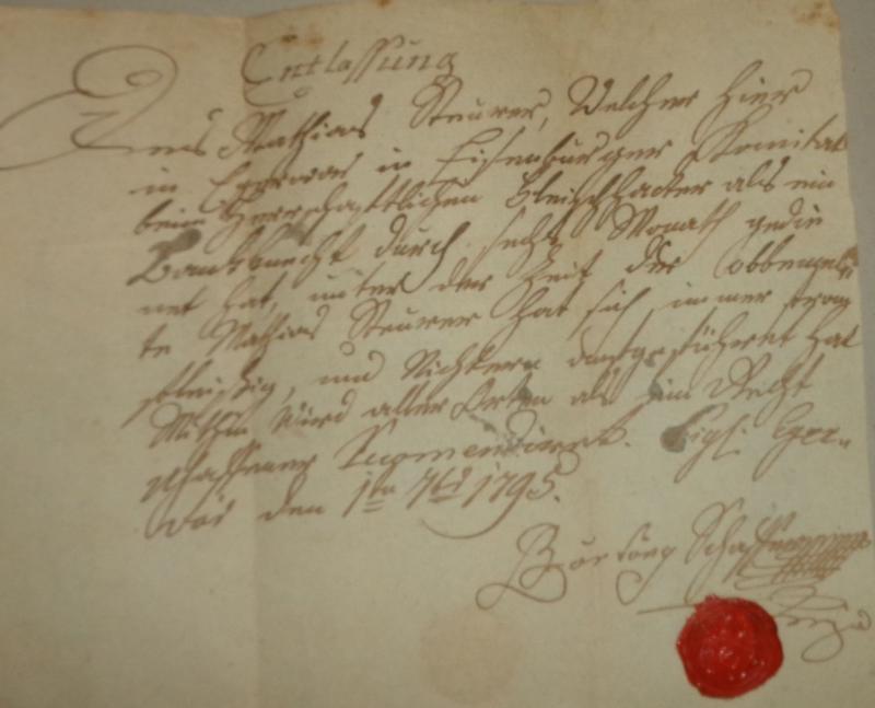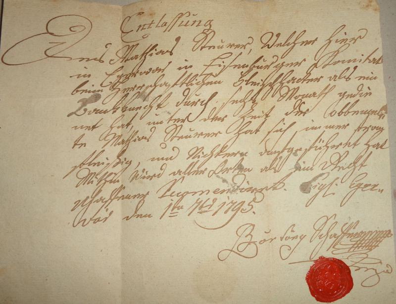 elbocsátó levél, amelyet 1795-ben állítottak ki.